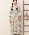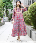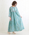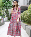 風合いのあるエスニックな雰囲気と華やかさが可愛いブロックプリントワンピース