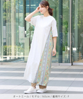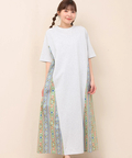 無地と柄で素材を変えた、スッキリとしたシルエットがリラックスムード漂う1枚。