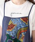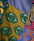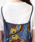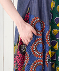 5種類のアフリカン柄とデニム生地をパッチワークにした、着るだけで気分が上がるデザイン。