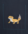 胸ポケットには go slow caravan らしい個性豊かなワンポイント刺繍を施しています。