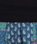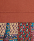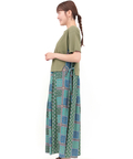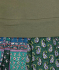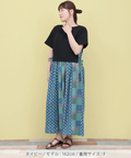 スカート部分にはインド職人による手彫りの木版プリントを用い、2柄の模様が華やかに交互に並びます。