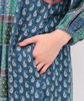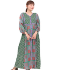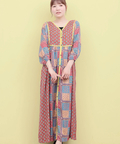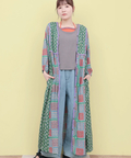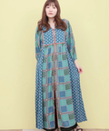 羽織としても着回せる、華やかなブロックプリントワンピース