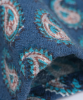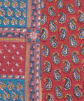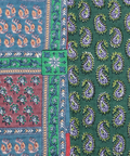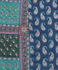インドの職人が手彫りした木版を使い、2柄のブロックプリントを交互に組み合わせた特別なデザインが目を惹く。