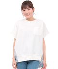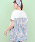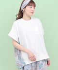 大人っぽい雰囲気に仕上げた柄がポイントになったカットソーコンビトップス。