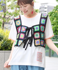 パッと目を惹くカラフルなクロシェ風のレース地を使用したベスト。
