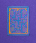ペルー・アマゾンの先住民族シピボ族の神秘的な幾何学模様のワッペンを裾にあしらいました。