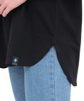裾をチラ見せしながら、Tシャツとレイヤードすればカジュアルなスタイリングに。