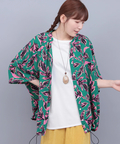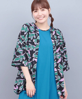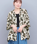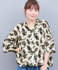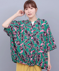 リーフプリントバンドカラーシャツ(大きいサイズ)