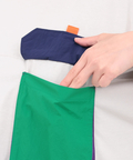 ポケット部分はシャカシャカとしたナイロン素材で、スポーティーかつカジュアルな印象に仕上がっています。