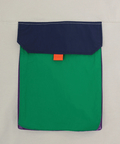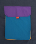 大きなフラップ付きの配色ポケットがアクセントになった、存在感のあるデザイン。