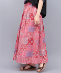 華やかながら大人っぽさも漂うパッチワーク風プリントスカート