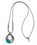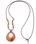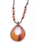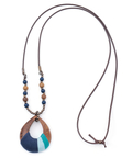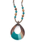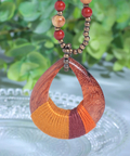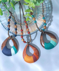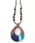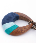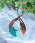 しずく型のウッドモチーフに3種類のカラーの糸を巻き付けた人気のデザイン。