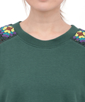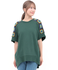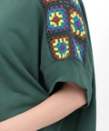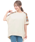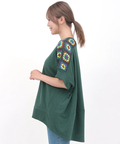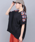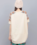 ぽわんと立体感のあるドルマンスリーブに、肩部分にさりげなくクロシェ風モチーフをプラス。