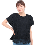 大人の落ち着き感を演出するレース切り替えプルオーバー