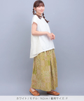 ほんのりと広がるやわらかなシルエットが、体のラインをさりげなくカバーしながら優美な雰囲気を演出。
