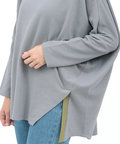 左裾にスリットが入っているので、パンツもスカートも合わせやすく、ボトムスを選ばず様々なコーディネートをお楽しみいただけます。