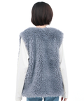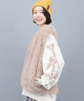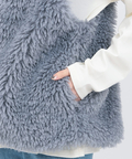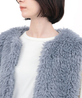 ふんわりとしたプードル調のフェイクファーが目を惹くベスト。