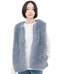 くるくるとした毛足が表情豊かなフェイクファーベスト