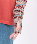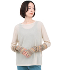 トレンド感のあるシアー素材を使用した、袖の柄が特徴的な1枚。
