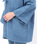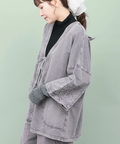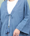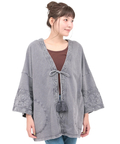 ガウンのように着られてタッセル付きの紐で開け閉めができ、リラックス感のある着こなしが楽しめます。