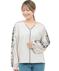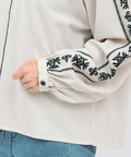 袖刺繍が映える♪エスニックムード漂うスキッパーブラウス