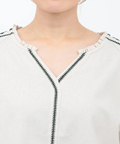 グアテマラの民族衣装「ウィピール」から着想を得た、幾何学模様の刺繍を袖に贅沢にあしらった1枚。