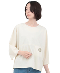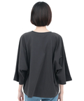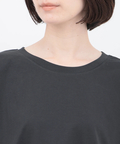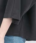 身体のラインを拾いにくい、ゆったりドルマンスリーブのTシャツ。