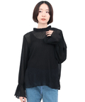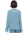 首元と袖はひらひらとしたフリルになって上品な印象に。