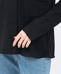 袖には幾何学柄の切り替えをプラスし、動くたびにさりげなく柄がのぞくのがポイント。