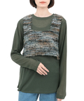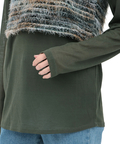 インナーは薄手のシアー素材でレイヤードしてももたつかず、程よく肌見せが楽しめます。