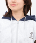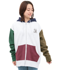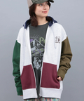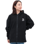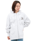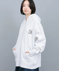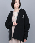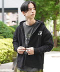 ざっくり羽織れるゆったりサイズのジップアップタイプで、ユニセックスに着られる一枚。