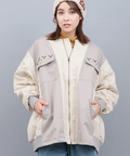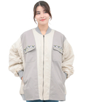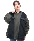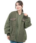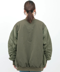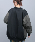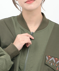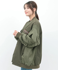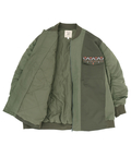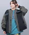 リメイク風の配色切替に、胸ポケットフラップのキカ柄刺繍がアクセントになったMA-1ジャケット。