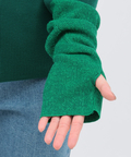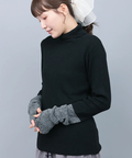 親指を出せるフィンガーホール仕様が新鮮で配色部分には2色をミックスしたメランジ糸を使用し、さりげなくアクセントを効かせています。