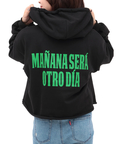 スペイン語で「明日は明日の風が吹く」という前向きなことわざを前と後ろに入れています。