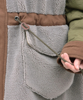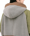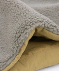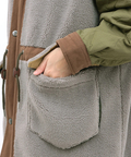 ふわふわとしたボア×キルト×ピーチツイル×ナイロン生地を組み合わせています。
