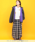 チェックのスカートと合わせて女性らしい着こなしにするのもおすすめです。
