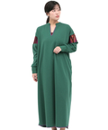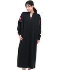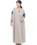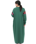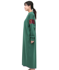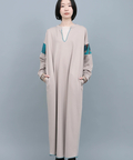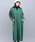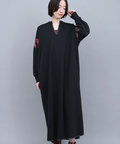 フォークロアな雰囲気漂う、スリットネックワンピース