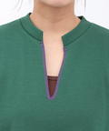 首元の大きめスリットが抜け感をプラスし、顔まわりをすっきり見せてくれます。