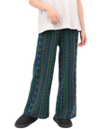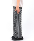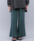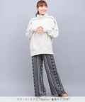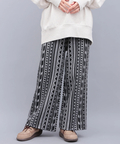 個性的な幾何学柄の総柄が目を惹くワイドパンツ。