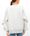 袖に施したリメイク風ラッフルが、カジュアルなスウェットの雰囲気を優しく中和してくれる女性らしい1枚。