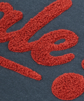 シンプルなカレッジロゴ風のデザインは、立体的なサガラ刺繍で存在感をプラス。