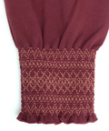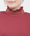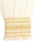 シャーリング部分には配色刺繍を施し、さりげなく華やかな印象に。