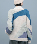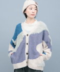 毛足の長い部分やメランジ調の部分など、1枚でさまざまな風合いを楽しめる個性派ニットカーディガン。