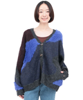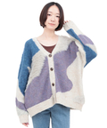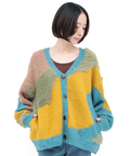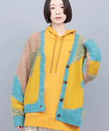 異素材ミックスの表情が楽しい♪アートのようなクレイジーカラーカーディガン