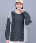 異素材ミックスで旬をまとう!フリンジが目を惹くリメイク風プルオーバー