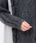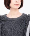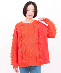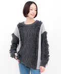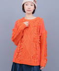 ケーブル編みニットにあしらったフリンジが、ほどよいボリューム感をプラスして立体的な印象に。