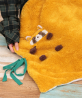 三つ折りにしてくるくる巻いて、首元で紐を結ぶともこもこキュートなぬいぐるみに。