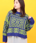 存在感たっぷりのバンダナ柄が個性を放つニットプルオーバー