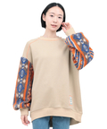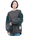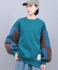あたたかい裏起毛スウェットのボディに、ボア袖がアクセント。