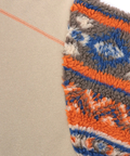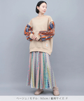 袖は、ベージュはエスニック柄、ブルーグリーンとチャコールグレーはベーシックボアとプードル風くるくるボアを組み合わせたデザインです。